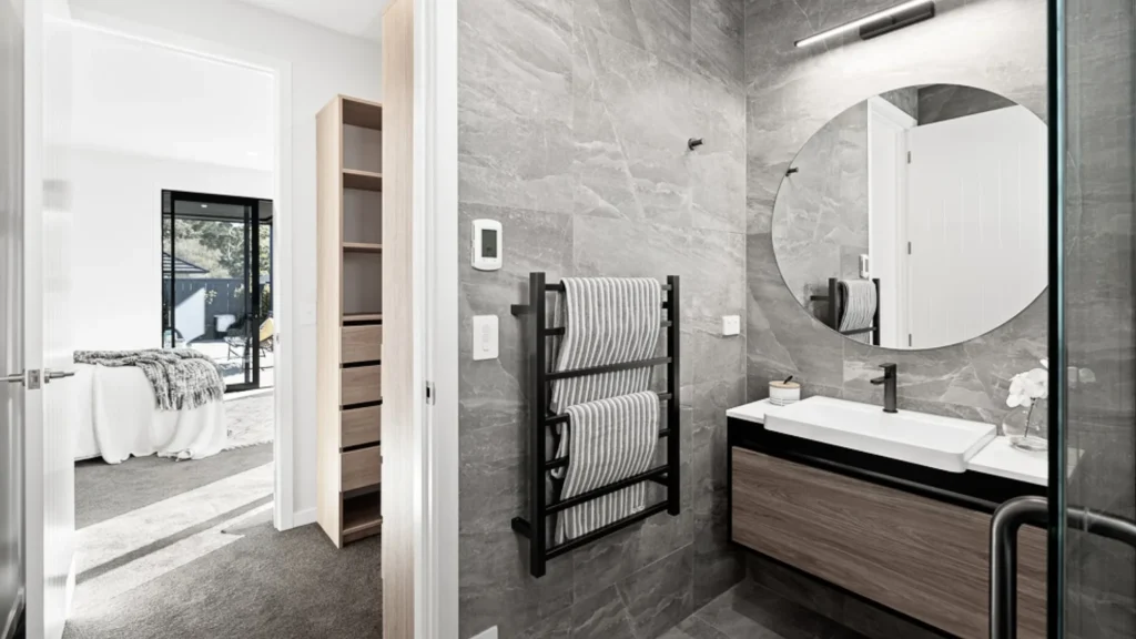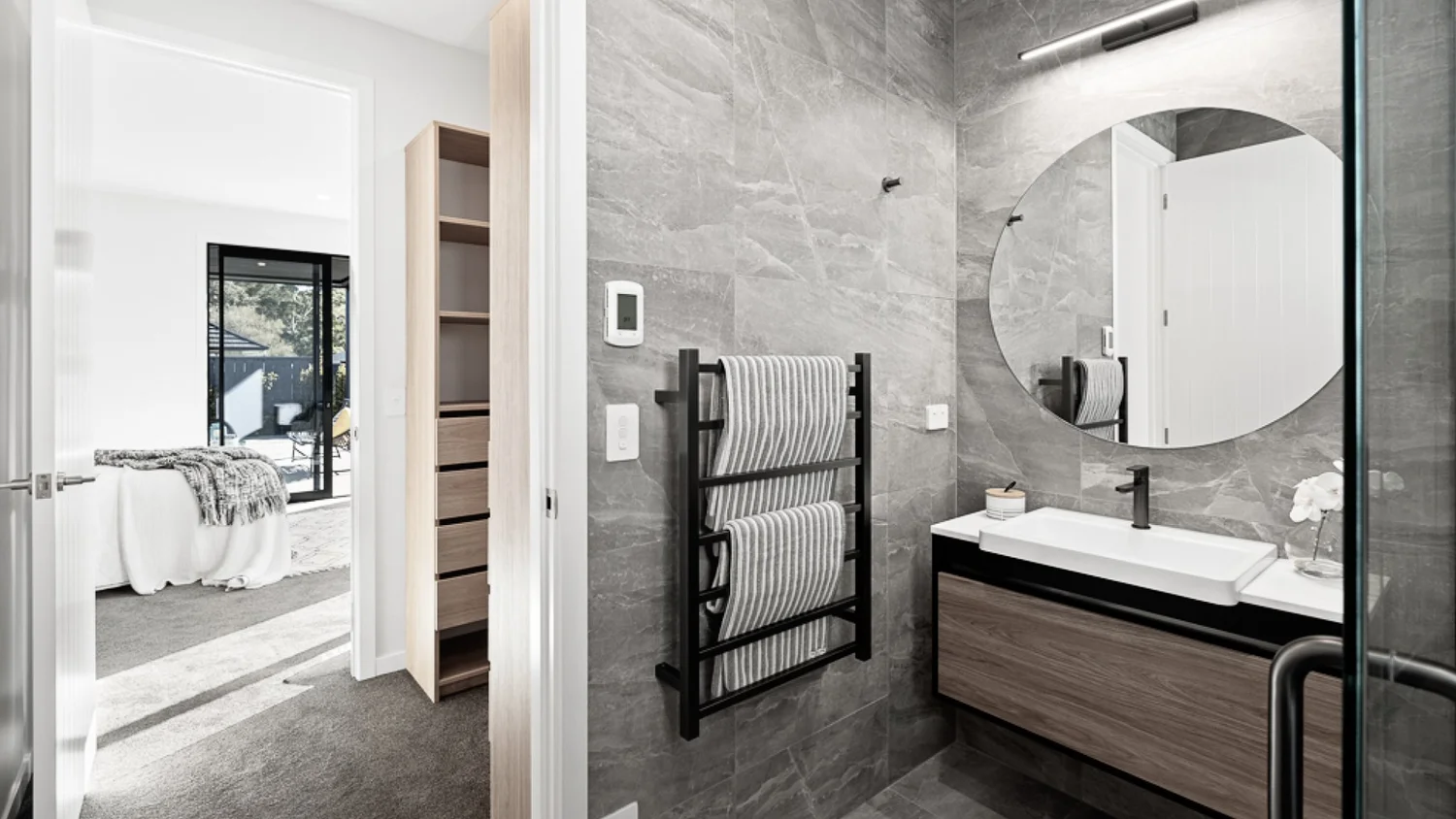 - When quiet time is required, the private wing is well separated, running behind the living zone. The principal suite boasts its own aircon and has lots of natural light, with sliding doors opening to the deck. The ensuite has a generous tiled shower and sits beyond the walk-in robe, great for privacy and insulating the noise of those early morning showers. Down the hall two more ample and equal bedrooms share the well-appointed main bathroom, serving family life well.